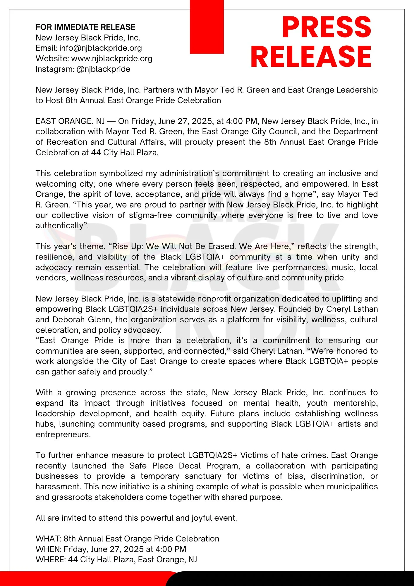NjBP Presents - EAST ORANGE PRIDE CELEBRATION